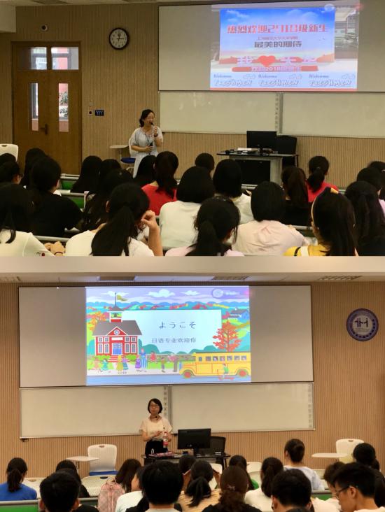 日语专业主任张丽珺在介绍会上,着重解释了什么叫绩点、哪些课程是绩点课、绩点如何计算等,并简要概括了本专业实践、竞赛、往届生获奖情况等,让新生对本专业有一定的认识,对毕业生以后的就业去向、考研留学有了初步了解。