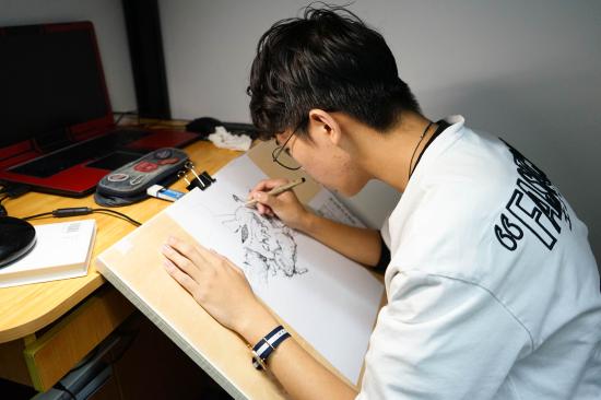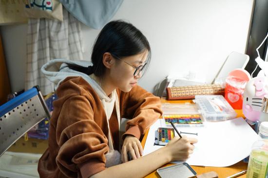 (学生在寝室绘画)