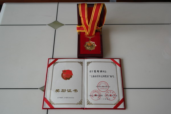 夏智源荣获2012年度“上海市青年五四奖章”荣誉称号