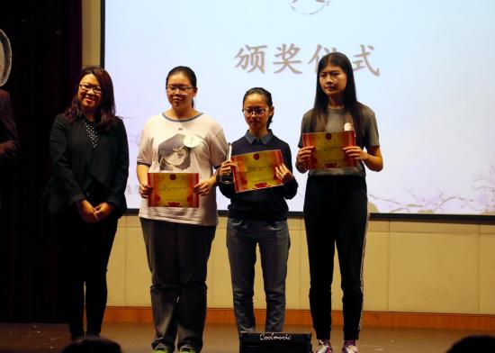 本次大赛共分为“成语易错字填写”、“诗词错别字抢答”、“题包自主答题”三个环节。经过多轮淘汰,共决出一等奖1名、二等奖2名、三等奖5名、优秀奖8名。15级汉语言文学1班王霖萱同学、15级日语1班乐懿萱同学与15级汉语国际1班的陆妍同学分别获得了前三名的好成绩。孙超书记亲自上台为她们进行颁奖。