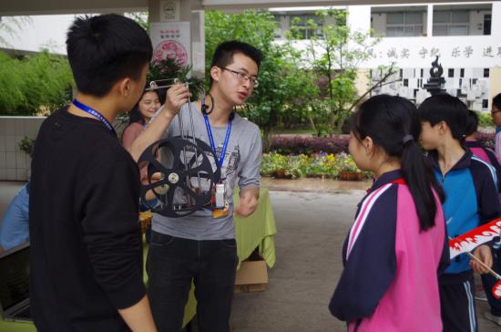 2016年5月27日,天空还飘着细雨,工作站的党员同志依旧如约来到了南苑中学,进行最后一次社会实践活动,本次活动的主要内容是与南苑中学合作组织的“科技嘉年华”,由宣传部负责老师张焰梦带领指导。