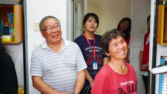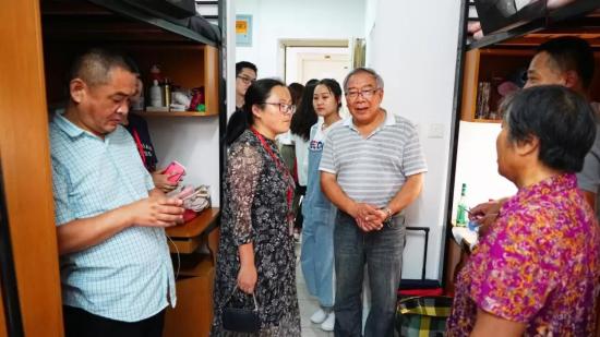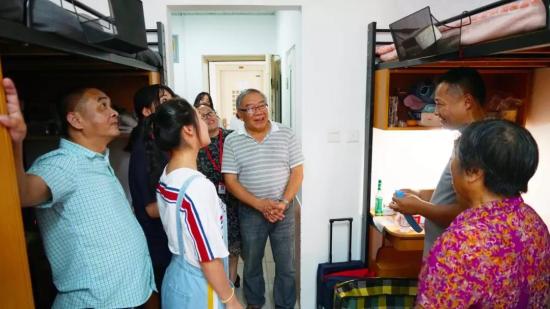 (家长们对新生寝室满意的笑容)