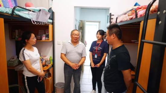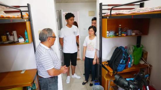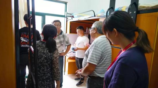 (校领导与正副辅导员走访新生寝室)