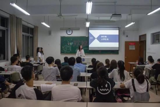 新生们和班助理们都热情澎湃的进行着大学的的第一次班会。今天的班会由班助先进行自我介绍,让新生与班助理,新生与新生之间加深了认识。
