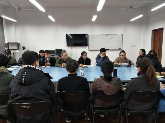 紧接着,院长助理李娟老师对新学期的科研任务进行了公布,号召大家积极参与。实训主任周亮老师对本学期的写生安排进行了介绍,希望大家积极配合。随后,院长助理包臻隽老师对寒假访问伊利诺利州立大学发表了感想,并对我院中美班的教学工作进行了展望。