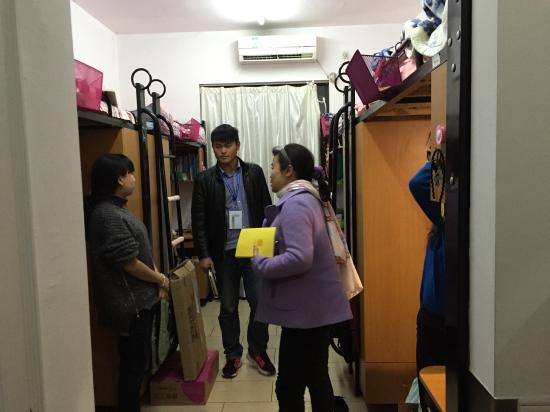 2016年2月28日新学期初,教育学院党总支组织辅导员团队深入学生宿舍检查,了解教育学院学生开学的精神面貌,把握其学习、生活状态,消除宿舍安全隐患,尽快恢复和谐、稳定的秩序。教育学院党总支副书记华芸、章双喜,各专业支部正副书记和全体正副辅导员参加了此次活动。