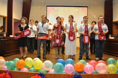 | 2012年6月8日下午,新疆学员培训项目组委会在明华楼五楼报告厅隆重举行首届新疆学员信息技术应用水平比赛决赛暨颁奖仪式。 | ||