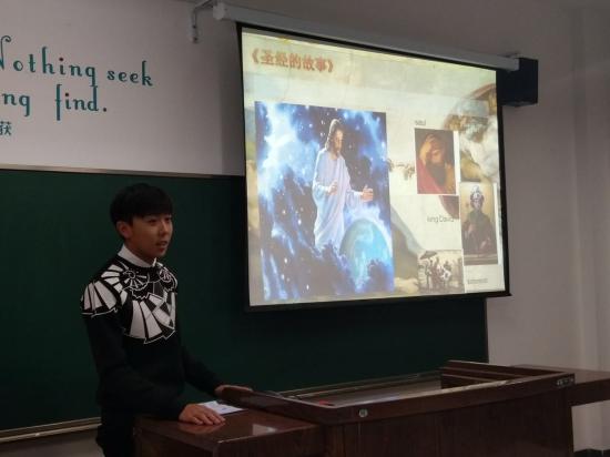 首先出场的是来自16物流管理1班的朱子骞同学,他向大家展示的是《圣经的故事》,受过专业播音训练的他犹如央视主持人一般吐字清晰、台风大气。但美中不足的是时间把控方面还需稍加改进,但也不失他为本场比赛做出了一个完美的开篇。
