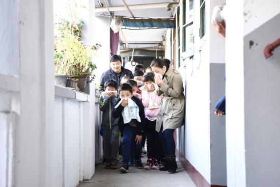 (孩子们在进行消防演习)