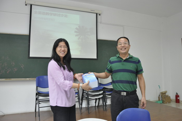 | 2013年9月26日下午14:40--16:00,我校“示范性全英语教学”教师沙龙在明华楼118会议室举行,本次沙龙的主题为"Teaching Courses in English" Project Startup Meeting(全英语教学项目新学期启动交流会)。副校长史文、教务处处长陈道炯、语言文化学院指导教授万正方、各二级学院院长和副院长,以及开展全英语教学的教师出席会议。会议由史文副校长主持。 | ||