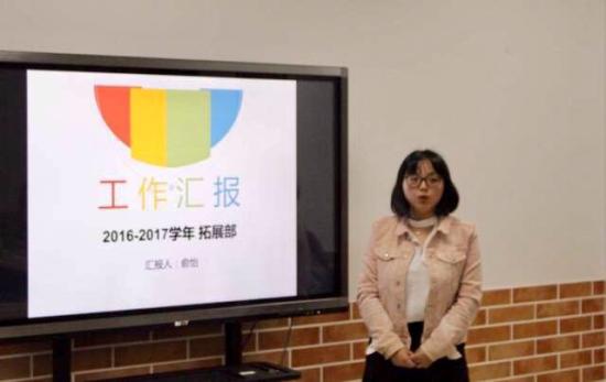 首先,党建中心主任陆亦欣作工作总结。她指出,上一学年工作开展中存在的问题,并对新一届学生干部工作提出希望,指引新干部如何开展新学期工作;副主任张冬琳在述职中详述了党建中心的工作中内容、各项活动数据分析及个人工作反思,将个人工作经验进行总结并对新一届工提出中肯建议;拓展部部长俞怡在发言中总结了上届拓展部工作中存在的不足,回顾了上一学年拓展部组织开展的各项活动,为新一届学生干部队伍建设树立了榜样;组织部长刘锡平从部门介绍、部门成绩、部门问题三方面,条理清晰地诠释了组织部的工作情况。各部门在述职中对过去工作进行了回顾和总结,同时对本部门工作建设提出展望,圆满完成新老部长的交接工作。