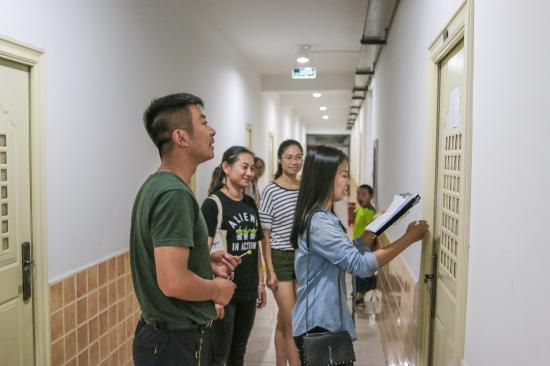 (党总支副书记徐姗姗带领辅导员们看望新生)