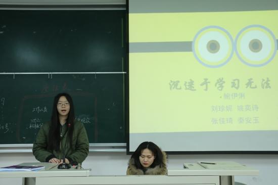 2016年12月27日下午,语言文化学院“学习型宿舍”学期总结汇报会在日阶302举行。语言文化学院党总支书记孙超、副书记杨央,分团委书记顾加慧,德语专业支部书记曹占侠及各班辅导员出席了本次活动。