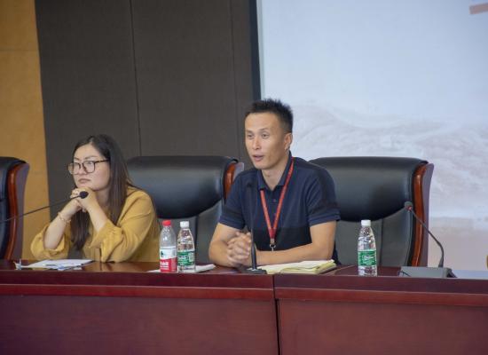 总支组织委员牛风学为大家简单介绍了工学院党总支相关构架与工作运转情况,工学院党总支在学校党委的领导与安排下开展各项工作,始终秉承不忘初心、牢记使命、为广大师生服务,开展党建工作,同时对学生做一些思政教育方面管理工作。目前工学院党总支有党员63名,分别从属四个支部:教工支部,学生第一、第二、第三支部,有七名委员,并向大家介绍了党员工作站--作为党组织开展实践活动的一个平台,成立于2013年9月,在赵科书记带领下,开展为广大师生服务和实践活动,并对其下的三个部门:纪检部、宣传部、组织部进行具体相关介绍。接着牛老师对入党流程也进行了介绍,并希望有意愿入党的同学上交入党申请书,加入队伍,积极向党组织靠拢。