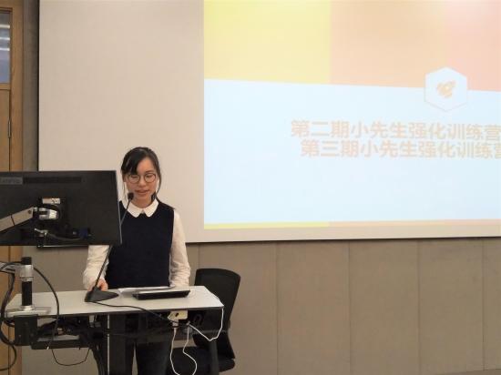 首先,由第二期“小先生”代表姚梦婷同学发表感言。她分享了自己成为“小先生”的一年里的收获和成长,并希冀第三期的“小先生”们能够感受到“授任意渔”的快乐。