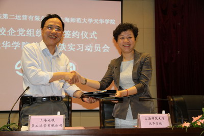 | 2012年5月14日下午,上海地铁第二运营有限公司与我院校企党组织共建签约仪式暨天华学院首次地铁实习动员会,在明华楼五楼报告厅隆重举行。 | ||