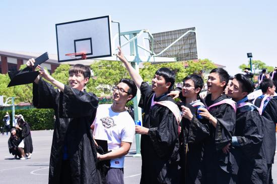 今天的校园里随处可见穿着学士服的毕业生们,他们用手机记录下与母校最后的联系,定格下闪亮的友谊,期望将这份笑脸保留下来。