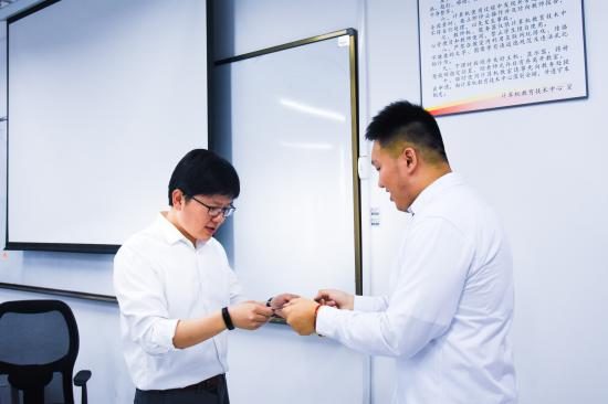 早上9点30分,在艺术设计学院分团委书记沈蕾老师的带领下,毕业生代表们轻轻叩开老师们的办公室,双手将装有感谢信的黑色信封递给老师的手上。