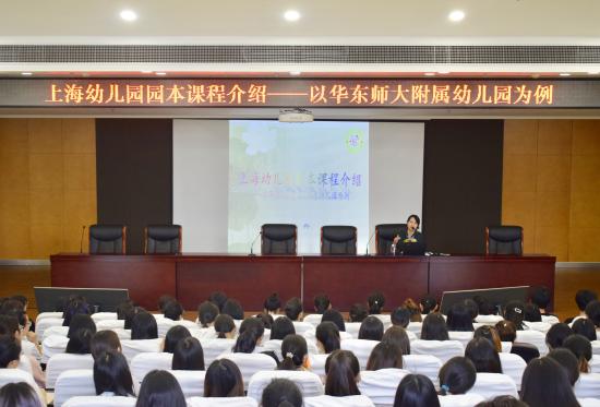 5月11日下午16点30分,在晖华楼报告厅,教育学院邀请华东师范大学附属幼儿园园长吴丹老师开设讲座,讲座的主题为:上海幼儿园园本课程介绍——以华东师大附属幼儿园为例。莅临本次讲座的有:教育学院党总支书记沈晓燕老师,教育学院院长助理、学前教育专业主任扶跃辉老师以及学前教育专业老师张萌、李丽、王英杰,教育学院2015级学前教育专业全体学生参加。