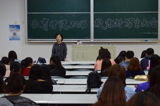 10月23日下午2点,13级艺术教育毕业写生动员大会在日华楼101阶梯教室召开。此次写生活动是按照教育学院艺术教育专业培养计划,根据校实训处安排,于2016年10月24日-10月29日在安徽宏村画佳宾馆艺术写生基地进行。出席本次会议的老师有:校党委书记助理凌琦老师、艺术教育专业第一支部书记周丹妮老师、艺术教育专业第二支部书记刘欣老师、学前教育专业第一支部副书记吕黎老师、艺术教育专业主任杨莹老师、艺术教育专业老师陈昊老师以及曹勇老师。参加本次会议的学生来自13艺术教育专业2-5班美术方向约140个学生。