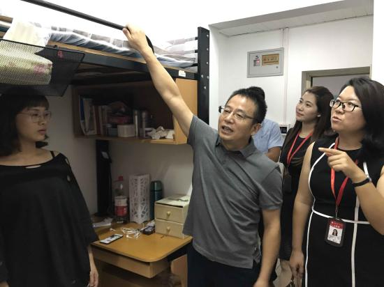 我院领导分别走访了1号和7号学生公寓的新生寝室,与新生进行了亲切交谈,老师们就不同专业的学习发展目标和方式方法提出了宝贵的建议,并为新生一一解答他们的疑惑,化解他们初入大学的种种焦虑和不安,帮助他们尽快适应校园生活。