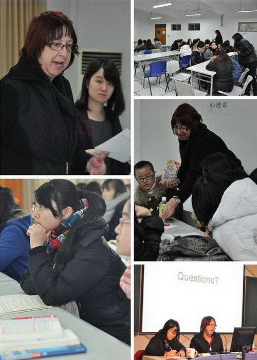 | 2012年12月28日、29日和2013年1月3日、4日,美国加州斯托克顿市新日幼儿园(New Day Preschool)学前教师Elizabeth Trevino女士和斯托克顿市联合校区(Stockton Unified School District)小学教师Cynthia Tejada女士莅临我院,通过举办讲座、开设示范课等形式进行学术交流。学院学前教育和小学教育专业的学生参加讲座和示范课,教育系全体老师及学院参加太平洋大学教育博士班项目的老师参加交流。 | ||