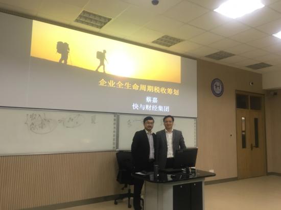 2018年10月23日下午16:10,财务管理专业在智慧教室日阶102开讲。本次邀请到快与财经集团CEO,高级研究员,多家知名地产建安公司的财税顾问,前上海市税务局大企业管理所副所长蔡嘉。蔡嘉老师毕业于北京大学硕士研究生,是会计学硕士,法学、会计学双学士,并且同时拥有:注册会计师、律师、注册税务师、注册资产评估师、经济师,证券、基金、会计从业资格证。曾任世界五百强绿地集团、益海嘉里集团、众邦金控集团等企业财务总经理、税务总监、投资总监等职位,从事财经法律领域的工作近10年。擅长企业投并购、融资财税法律规划,财税风险管控,财税核算等业务。在《中国税务报》、《中国建材报》、《经济论坛》、《上海会计》、《广东财会》、《财会月刊》、《财会通讯》等核心刊物以及国际会议论坛上发表专业论文20余篇。