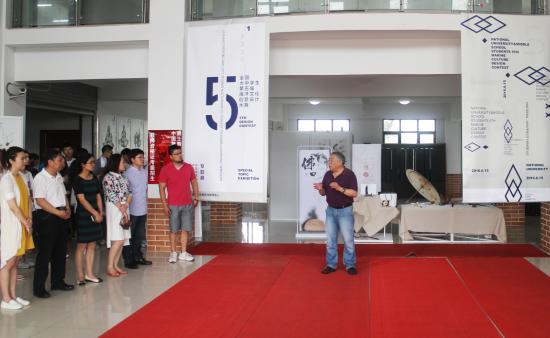 6月21日上午十点,由艺术设计学院主办的“全国大中学生第五届海洋文化创意设计大赛参赛作品展”在光华楼二楼大厅开幕。艺术设计学院院长王大根、学院指导教授张力、副院长徐子卿、朱花、院长助理李娟、包臻隽出席开幕式,以及艺术设计学院部分师生80余人参加了开幕式。开幕式由院长助理、视觉传达专业主任包臻隽老师主持。