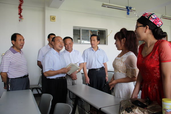 | 2012年9月28日上午,嘉定区副区长朱建江一行来我院看望培训学员,听取了学院副院长龚春蕾对新疆培训工作基本情况的介绍。朱建江副区长对我院的培训工作给予了充分肯定,对我院付出的努力大加赞赏。朱建江副区长一行还深入宿舍楼,亲切看望培训学员并鼓励学员努力学习。(新疆培训项目管理办公室) | ||