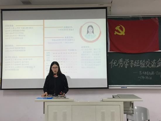 首先,由支部书记周丹妮老师宣布交流会开始,主持人陶晨同学介绍本次活动的主题为交流、启迪,并依次介绍来到现场的三位优秀毕业生代表的基本情况。