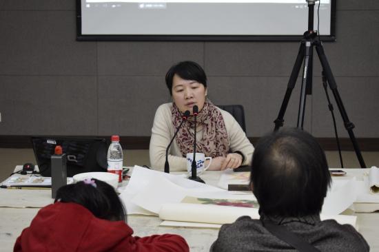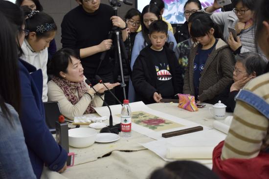 3月11日下午1点30分,同学们准时在陆俨少艺术馆集合,由陈昊老师带领进入展馆。在一楼观赏了“春之颂”主题水墨画展之后,同学们来到了二楼,仔细观摩陆俨少艺术馆内收藏的名家书画原作、文房遗物、手稿画册等。下午2点“灵动——工笔花鸟现场创作”观摩开始。此次讲座由上海中国画院画室成员、中国美术家协会会员鲍莺主讲。鲍老师通过展示自己的作品,仔细分析了中西文化元素在绘画作品中不同的呈现方式;随后,鲍老师结合自己早年学习绘画的经历,告诫大家不忘初心,艺无止境,一个好的艺术作品不但要有出众的技法,更要有自己独特的见解;最后,鲍老师现场创作工笔画牡丹图,一展名家风范,同时让大家对工笔画有了更深刻的理解。