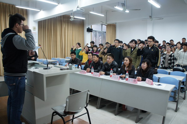 | 2013年3月20日下午17:00,计算机系在日华楼122召开寝室长培训誓师大会,全体寝室长、各班生活委员参加培训,本次会议是在前期按年级培训的基础上召开的。学保处副处长周烨刚、处长助理周建文、计算机系正副辅导员出席会议,会议由联合党总支书记王慧荣主持。 主抓寝室长队伍的副辅导员何凯从寝室长队伍成立意义、队伍组织架构、工作职责等方面进行培训;寝室长代表杨泽宇带领全体成员宣誓;学保处副处长周烨刚对计算机系寝室长队伍进行点评并对寝室长提出要求,重点强调了学院本学期主抓寝室长队伍的原因,强调作为寝室长是一份光荣职责,不但可以帮助别人,还可以学管理、学人际交往、学技能,鼓励同学们要勇于承担,共同为学院学风建设出一份力。(何凯) | ||