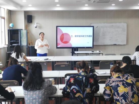 接下来,教育学院副院长徐娟向教师们通报了教学与科研的相关事宜。徐院长首先通报了开学一个月以来的教学情况。其次,徐院长肯定了上一学年教育学院的老师们在科研上踏实认真的态度及做出的努力,并特别表扬了科研突出的扶跃辉老师、张萌老师、赵琼老师、戴沉雁老师等,鼓励其他教师也能像这些老师学习,在做课题的同时提升论文发表的数量和质量。此外,徐院长也提出了新学年科研要求,希望各位老师在科研方面进行更加具体、更有目标的规划。