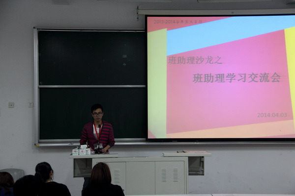 | 2014年4月3日下午,学保处在日阶102举行如何优化班助理工作经验学习交流沙龙。各二级学院的班助理负责老师和全校108名班助理参加了此次活动。校班助理负责人华芸老师主持。 各二级学院班助理负责人交流开学至今各学院班助理工作的开展情况。健康学院的互助式英语学习,语言文化学院的“英语梦工厂”、“阅读经典,学做儒雅人”,管理学院的心理辅导委员会,工学院举办的班助理“茶话会”、十八届三中全会学习班会以及教育与艺术学院教育类专业的“彩虹心灵”工作室,艺术类专业的艺术墙都有鲜明特色,可供相互学习借鉴。 华老师对班助理工作进行了总结发言,详细地介绍了下半学期的月度重点工作安排,希望班助理在抓学生成绩的同时要加强对他们的思想政治教育,强调要深入推进经典阅读,并定于4月23日“世界读书日”这一天举办班助理 “书香天华”读书沙龙――“书香伴我行,悦读越快乐”读书交流活动。 | ||