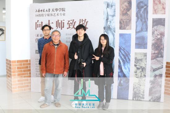 (王院长、画展负责老师及新媒体实验室社长合照)