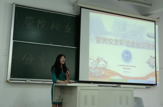 2016年6月2日,部分毕业生应管理学院邀请,重回母校。重拾旧时记忆,共话同学师生情谊。上午9:20在日阶102进行校友职场经验交流会,管理学院院长程葆青老师 、管理学院党总支书记周凯波老师 、管理学院党总支常务副书记王一青老师 、分团委书记喻林萍老师以及旅游管理专业党支部书记周欢老师出席本次活动。