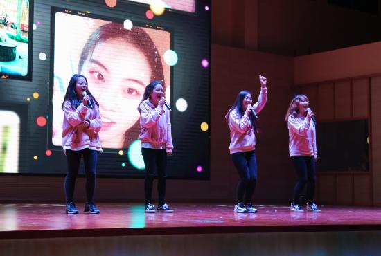 (由辅导员老师沈蕾老师、贾孟云老师、杨婷老师和刘婧老师共同带来的歌曲《你的微笑》)