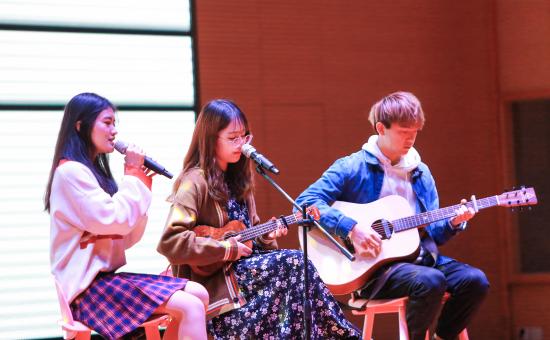 (第十二届艺术分团委学生会成员们带来的歌曲《不说再见》)