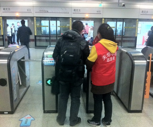 | 2013年3月3日,学院教育系团总支学生会发起了“学习雷锋好榜样,传递青春正能量”的活动,组织系学生会外联部志愿者在地铁11号线嘉定北站做志愿服务。学生志愿者们以饱满的热情帮助行人提行李箱到安检机器,对遇到问题的行人进行帮助;在刷卡处维护进出站秩序;在上下地铁处提醒行人在黄线内候车,注意文明乘车;向不熟悉路况的行人提供帮助,进行简单引导。活动从8:30持续到中午11:00,在繁忙的地铁站中我们的志愿者身着红色马甲,面带微笑穿梭于地铁站中成为地铁站里一道亮丽的风景。 此次活动是教育系团总支学生会为了响应学院号召而举办的,旨在加强学习“雷锋精神”,真诚服务他人与社会。通过志愿活动,学生们主动承担社会责任,积极传承乐于助人的优良品质,传递了正能量。(教育系) | ||