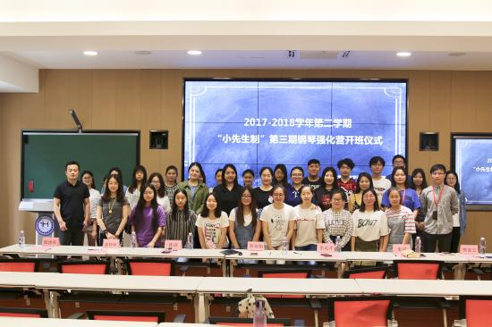 2018年5月30日中午12:15,教育学院在日华楼智慧教室开展了第三期钢琴小先生开班仪式。莅临本次开班仪式的领导老师有教育学院党总支书记答英娟老师、教育学院实习实训处主任岳远洋老师、教育学院党总支副书记朱可老师、教育学院分团委书记沈洁老师以及教育学院的辅导员们,开班仪式由“小先生制”负责老师朱奕非主持。