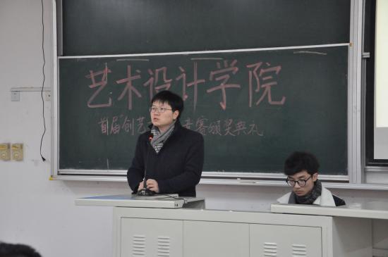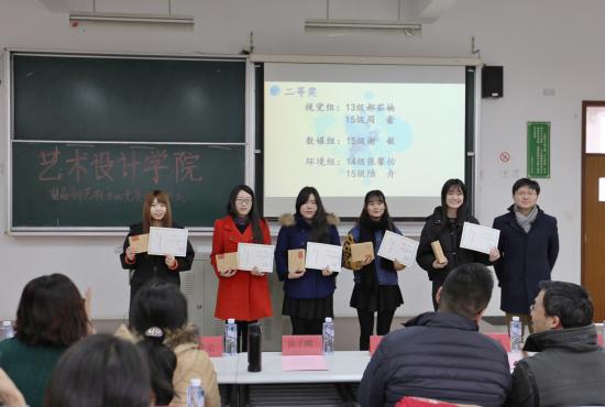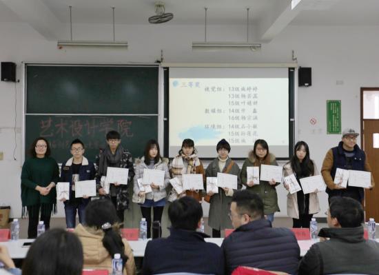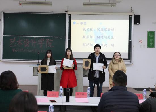 2016年12月28日中午11点45分,艺术设计学院首届“创艺杯”专业竞赛颁奖典礼于日阶202隆重举行。艺术设计学院党总支书记王慧荣,艺术设计学院副院长、数字媒体艺术专业主任徐子卿,艺术设计学院院长助理、环境设计专业主任李娟,艺术设计学院视觉专业老师钟华勇,艺术设计学院分团委书记张旭以及我院正副辅导员们莅临本次颁奖典礼。