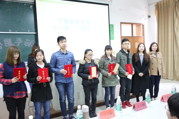 颁奖仪式首先由艺术设计学院王大根院长讲话发言,他在发言中表示自己非常喜欢动手制作一些家具,并且还举了他与他的儿子以及学生一起动手制作东西的例子。王大根老师希望各位同学都能成为心灵手巧的人,用自己的努力一点一点的保护环境。随后各位老师为获奖的个人与团体颁发奖状以及奖金。