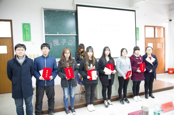 2016年3月23日艺术设计学院中午12点在日阶103举办了“心随手动”手工艺作品大赛的颁奖仪式。此次颁奖仪式出席的领导有艺术设计学院院长王大根、艺术设计学院党总支王慧荣、艺术设计学院副院长徐子卿、艺术设计学院党总支副书记沈思、艺术设计学院院长助理李娟、以及全体正副辅导员们。本次“心随手动”手工艺作品大赛由艺术设计学院党员服务中心举办,环保、艺术、废物利用等词汇联系到一起。