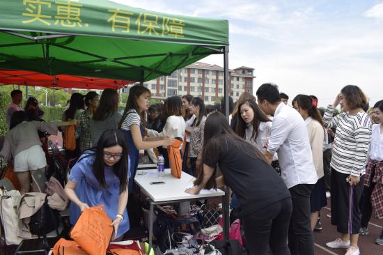 教育学院2017届毕业生共有10个班,共418名,在此之前毕业班辅导员杨荻、刘欣、周丹妮、康淼老师都已经提前做好相关通知,并安排好当日毕业拍照的相应流程;同时由毕业班副辅导员何凯、狄怨怨、邢广金、吕黎负责本班的拍摄整队入场任务;由副辅导员许小康做全学院的统筹安排,其他的正副辅导员从旁协助。本次志愿者共有24名,全部来自教育学院第五届党建中心各部门的干部及干事们,由党建中心秘书部部长刘晓菁带领,辅导员刘欣老师负责。在毕业照拍摄前一天5月18日,刘欣老师召集志愿者们开筹备会对毕业照拍摄当天的相关任务做了详细的布置。志愿者们于活动当天早上7:30便在光华楼207集合,一箱箱的学士服搬到大操场划分的发放点,开始了一天的忙碌。从搭帐篷、摆放桌椅、负责签到、分发学士服、发放离校通知单等,各项工作开展的井井有条。在全部的毕业照拍摄结束之后,志愿者们又将现场所有的物品归还到位,并清理毕业生们因匆忙而未收走的垃圾,最后将收回的学士服清点整理完毕,搬回教育学院学士服储藏教室。志愿者们从学士服的清点整理,到活动会场布置,再到活动结束后的清理,每一处都有他们无私奉献的身影。