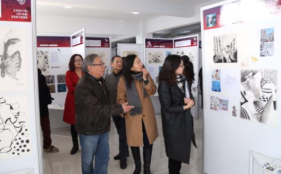 2016年12月16日中午12点15分,由艺术设计学院主办的“创由心生”《设计素描》活力课堂实验教学成果展于我校光华楼二楼展厅盛大开幕。我校副校长兼“活力课堂”验收专家组龚春蕾老师、陈新斌老师,党委副书记许岳老师莅临现场出席开幕式,并验收课程教学效果。艺术设计学院院长王大根,副院长朱花及其他教师、学生也来参加,会议由李娟老师主持。在老师们的悉心指导和同学的共同努力下,现场被布置的井井有条且富有设计感,吸引前来参观的老师和同学们驻足观赏。