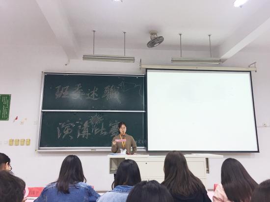 作为17环境设计专业的班助理负责人,陆仪洁同学作为评委代表之一对上台演讲的班委们进行点评。鼓励了所有上台演讲班委的勇气,也对所有班委的能力进行肯定,希望他们可以在未来可以为班级继续服务,再接再厉。