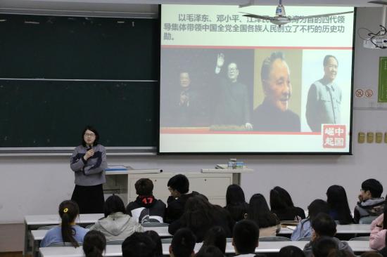 本次党课是由奚惠老师担任讲师。课程一开始,奚惠老师就与学生进行互动提问,通过提问“中国真的崛起了吗?”引出本次党课主题“中国崛起”。