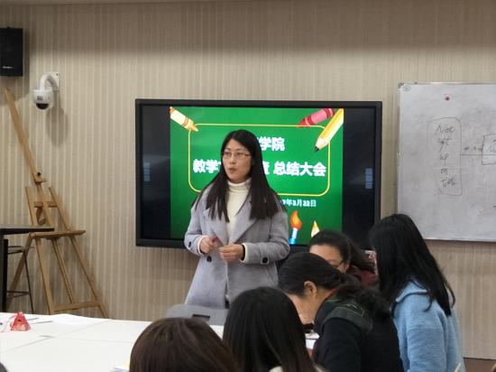 其次,小学教育专业主任韩苏曼老师,针对上周学校教学文档检查中发现的问题给大家做了说明。同时又在批改试卷、登分、教学进度表的填写、学生作业的回收与提交、记分册的填写等方方面面需要教师注意的细节,以及正确的填写要求给大家做了详细的说明和举例,并以ppt的形式给教师们做了梳理,使大家对每门课的教学文档规范都有了清晰的了解。