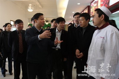 | 2012年3月28日上午,上海市副市长姜平、市政府副秘书长王伟等领导莅临我院调研新疆培训项目的工作进展,了解新疆大学生在沪学习生活情况。 | ||