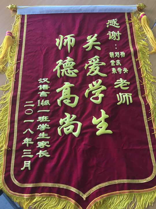 锦旗虽轻,情谊却重。语言文化学院2014级汉语言文学1班辅导员杨央老师表示:热爱学生,关心学生,对学生高度负责是每一名教师应尽的责任。在天华,爱岗敬业,关爱学生的老师还有许许多多。我们会继续把家长对老师的鼓励和肯定化作工作的动力,呵护学生成长,关心学生发展,力争做到让学生安心,让家长放心,让社会满意。